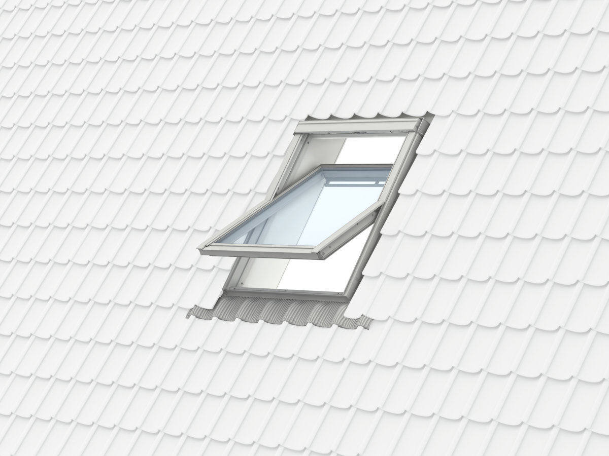Manueel wentelend dakvenster in witgeverfd hout, een UV-bestendige acrylverf op waterbasis. Het raam is voorzien van een ventilatieklep die zorgt voor natuurlijke ventilatie en verluchting zonder het venster te openen. Gemakkelijk schoon te maken dankzij