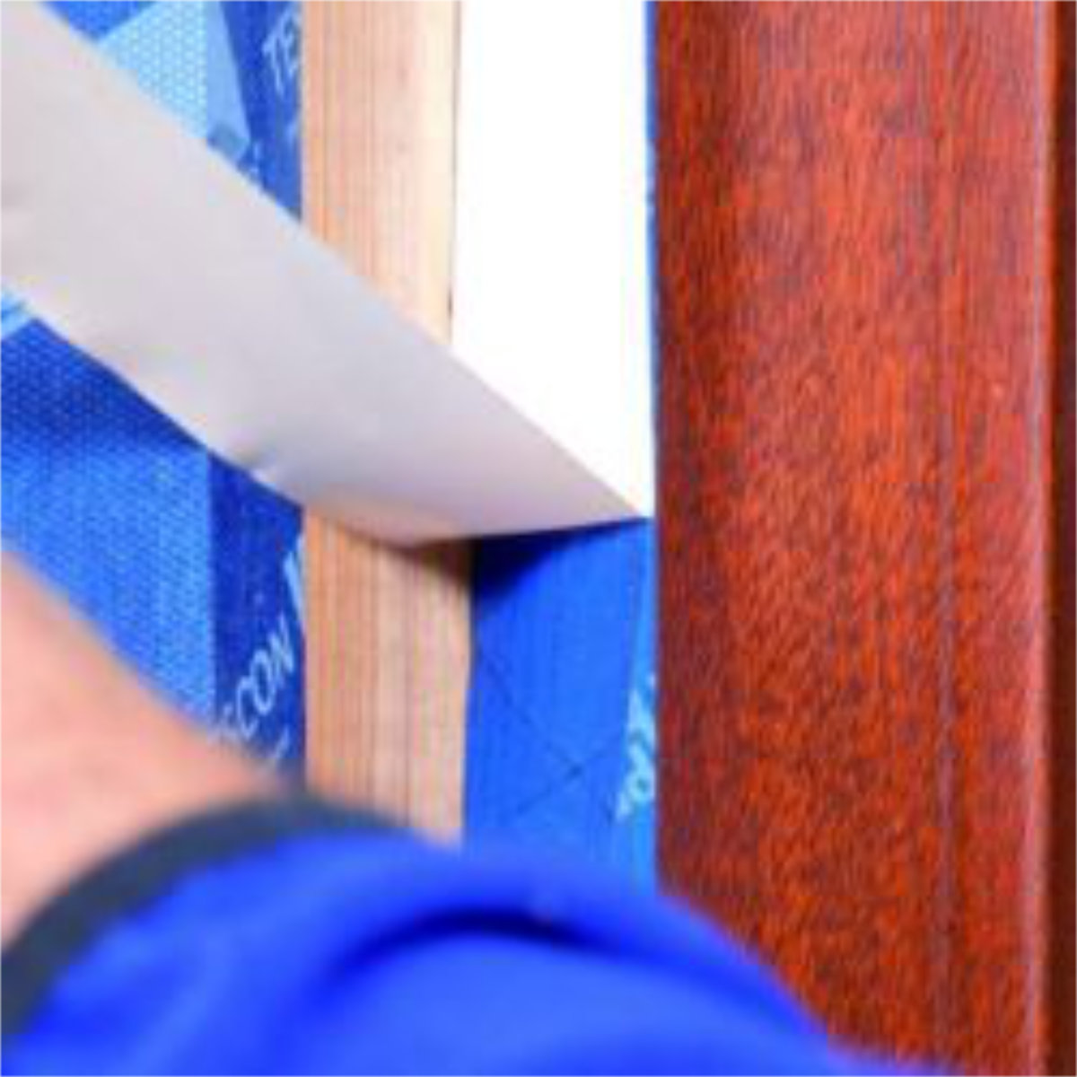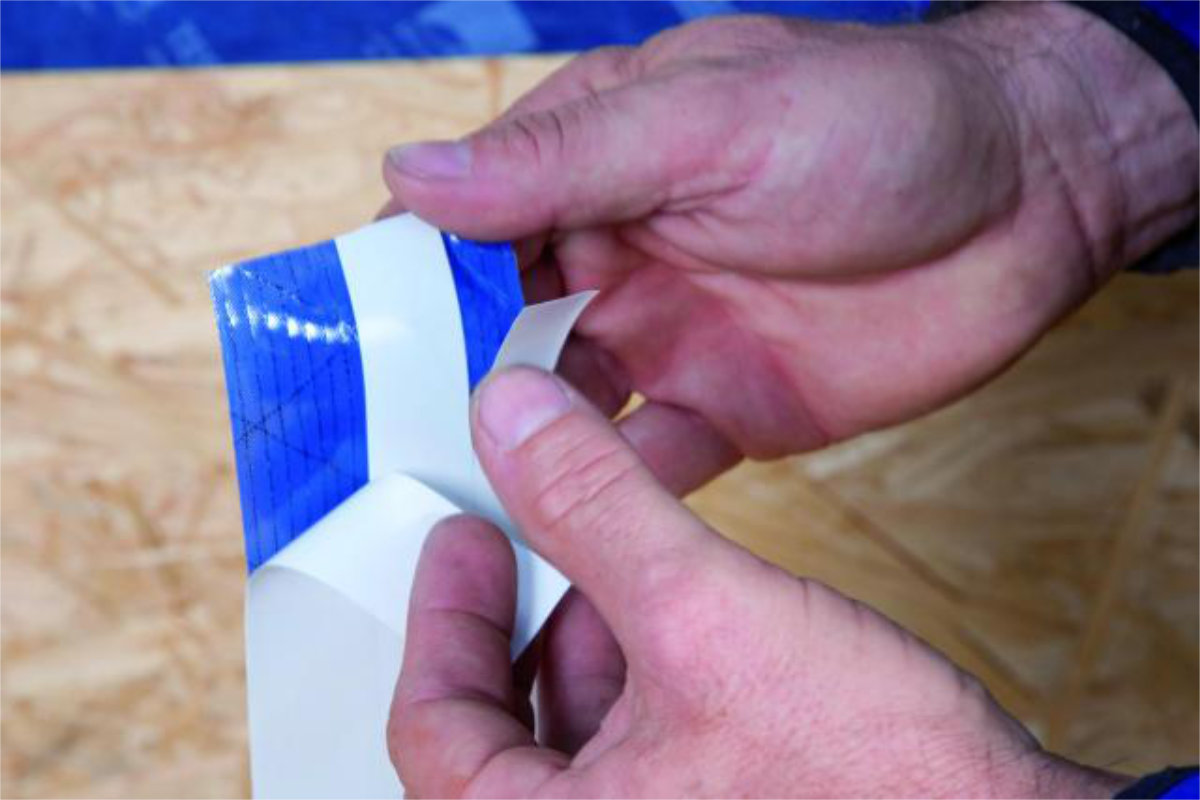 Kleefband met 3 stroken afdekfolie voor gebruik in hoeken